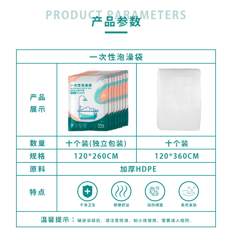 - Specifications: Bathtub bag 120*260 single pack (color packaging, each bag is individually packaged)