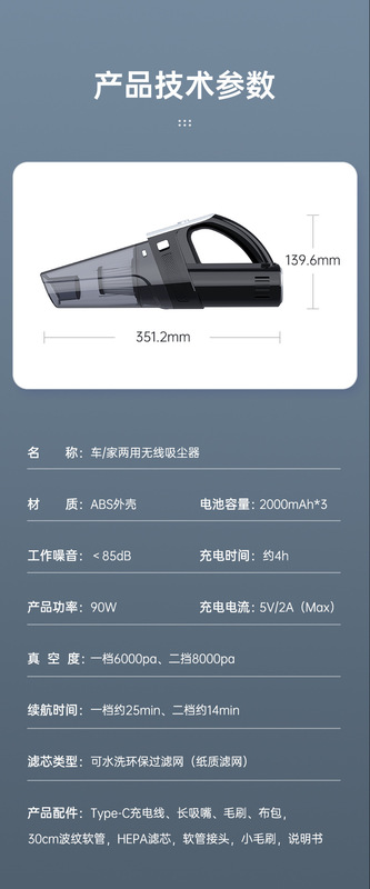 - Type: Portable car vacuum cleaner