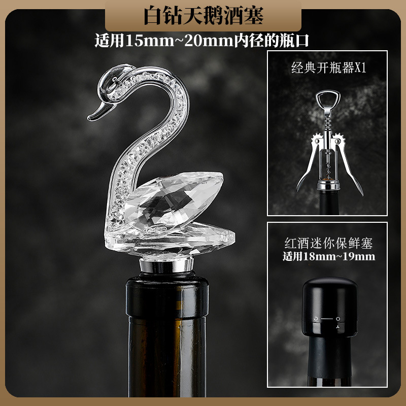 - Specifications: white diamond crystal swan wine stopper + classic bottle opener + mini fresh-keeping stopper
