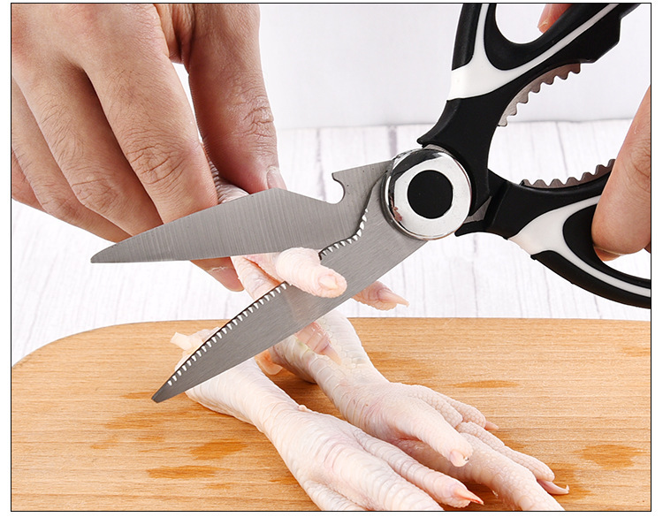 - Specifications: Double-tooth black and white kitchen scissors + black and white seafood scissors