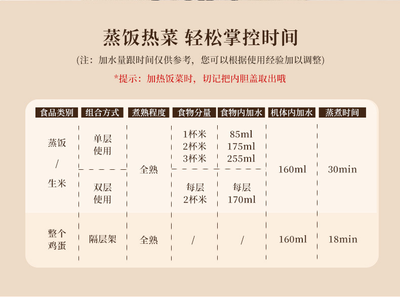 - 功能:保溫+悶燒