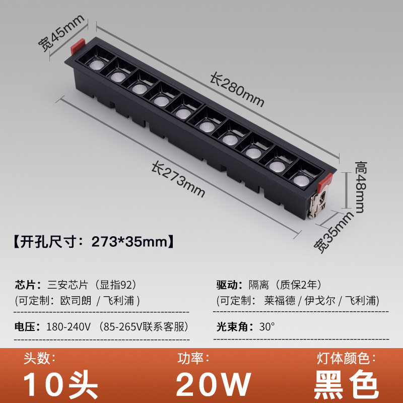 - Power: Open hole 273*35 black shell 10 heads 20W