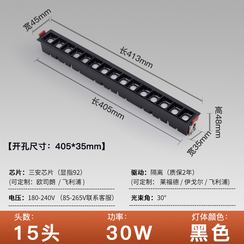 - Power: Open hole 405*35 black shell 15 heads 30W