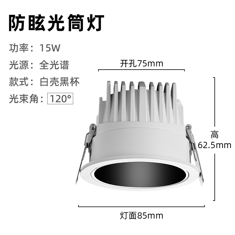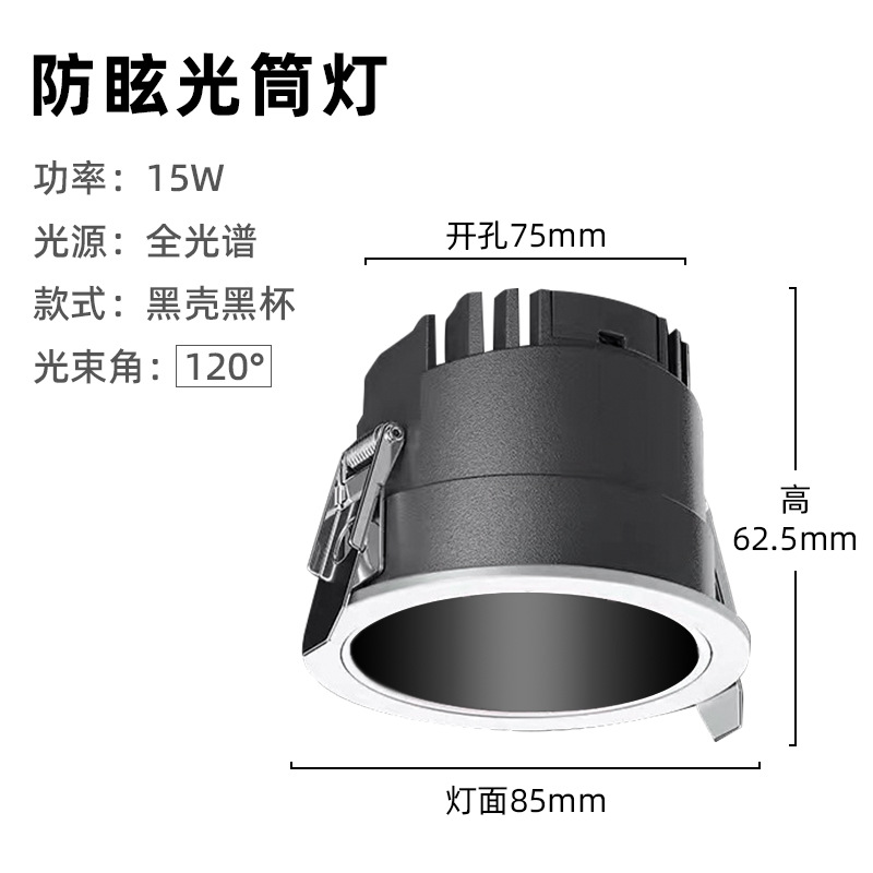 - Power: 15W Full Spectrum + Leford Driver White Shell Black Cup / 75mm Open Hole