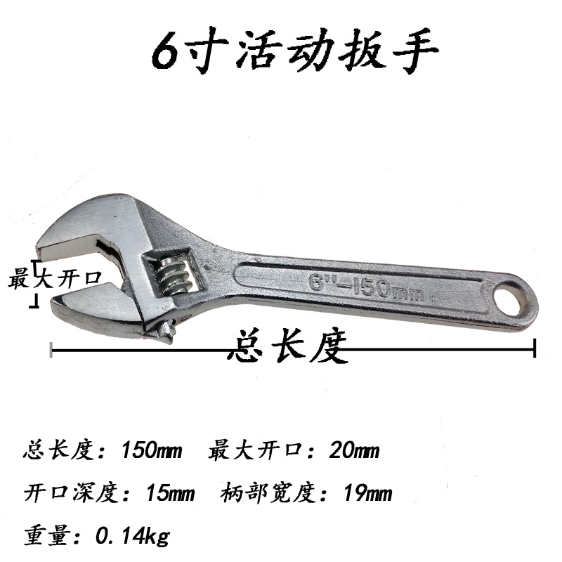 - Specifications and models: 6-inch adjustable wrench
