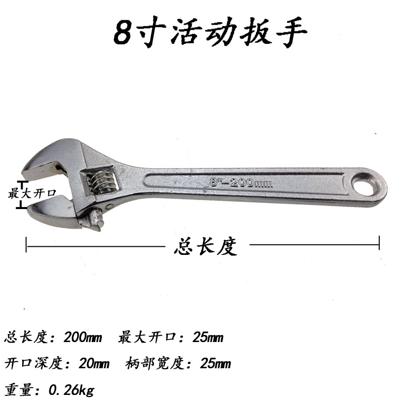 - Specifications: 8-inch adjustable wrench
