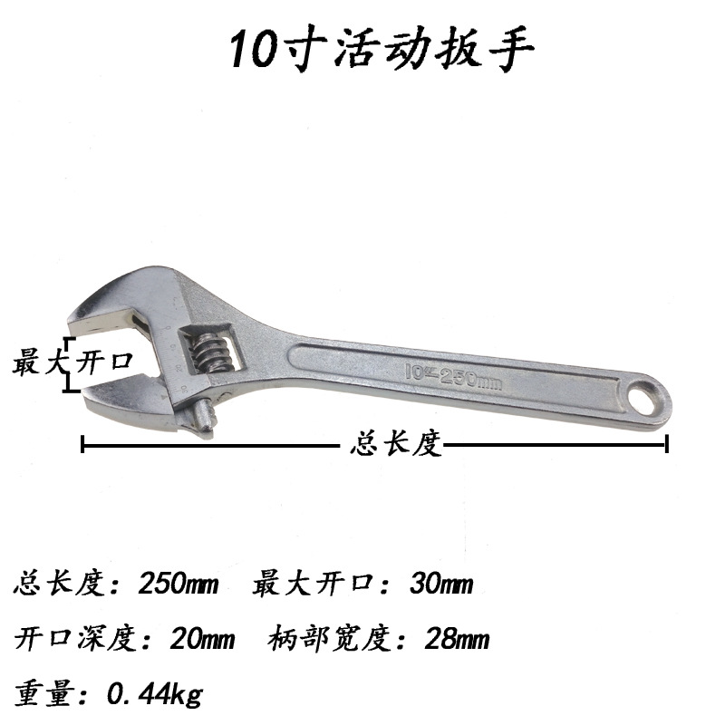 - Specifications and models: 10-inch adjustable wrench