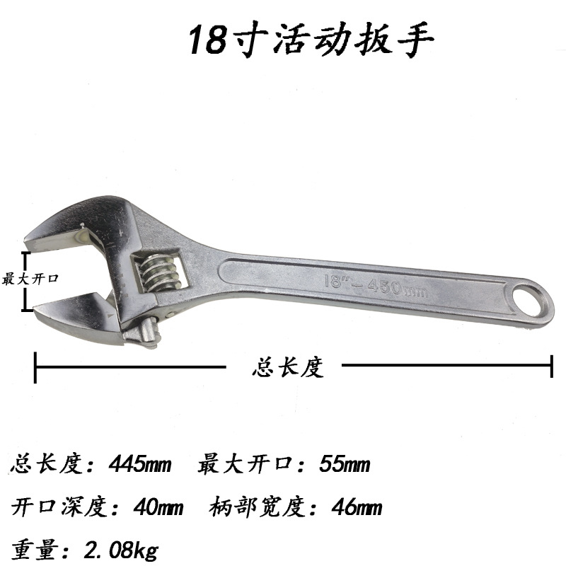 - Specifications: 18-inch adjustable wrench