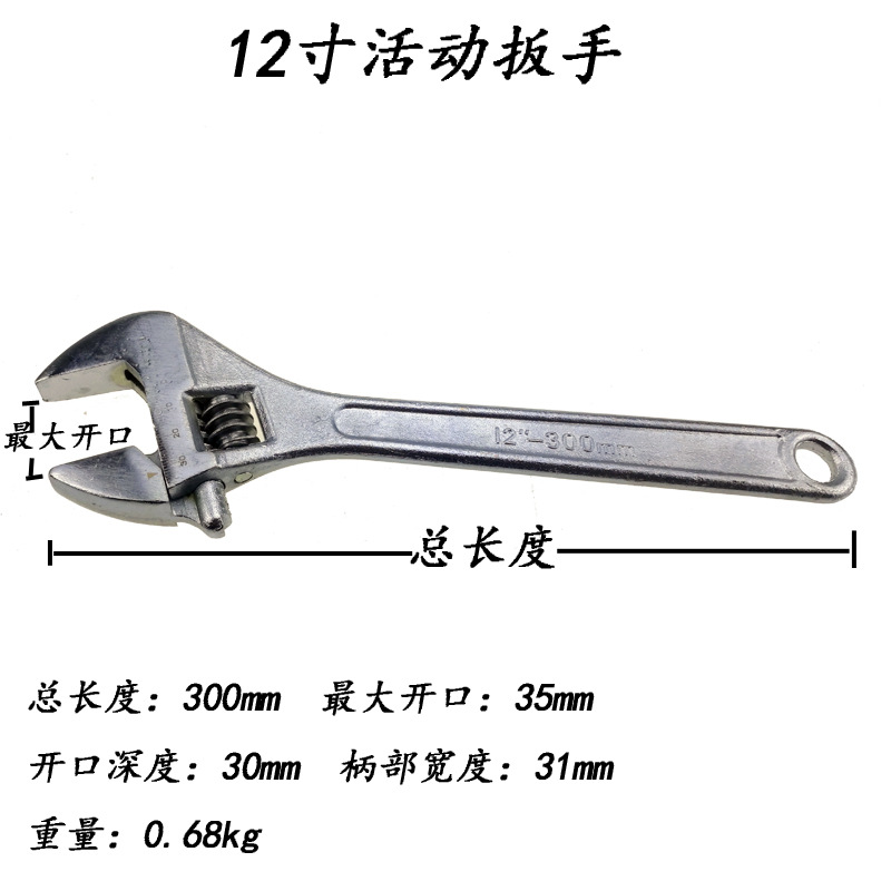 - Specifications and models: 12-inch adjustable wrench