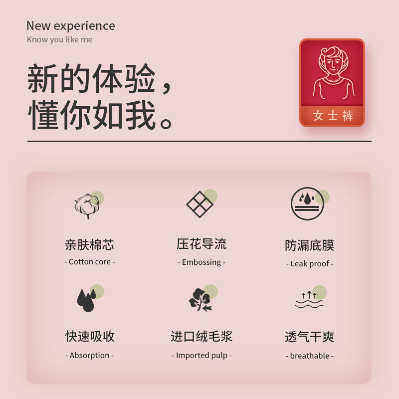- Material: Non-woven fabric, cotton pulp, high molecular, PE anti-leak bottom film