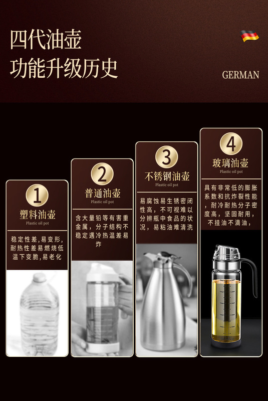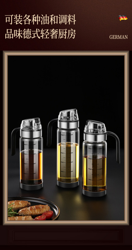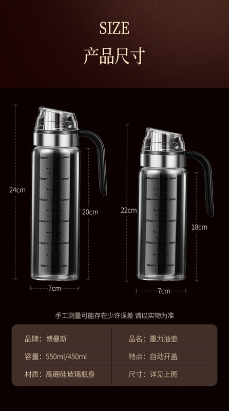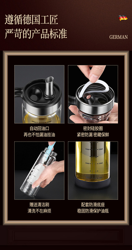 - Capacity: 550ML: opening and closing glass oil bottle