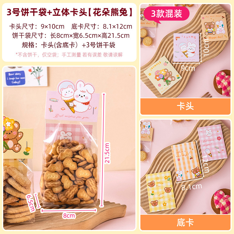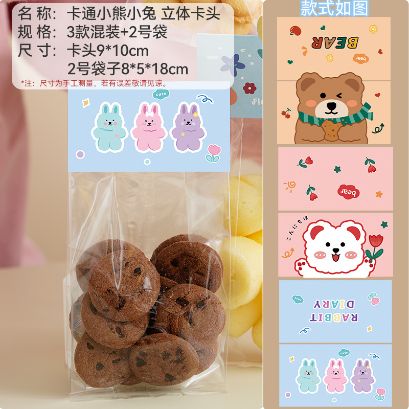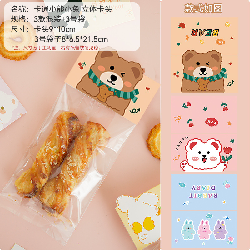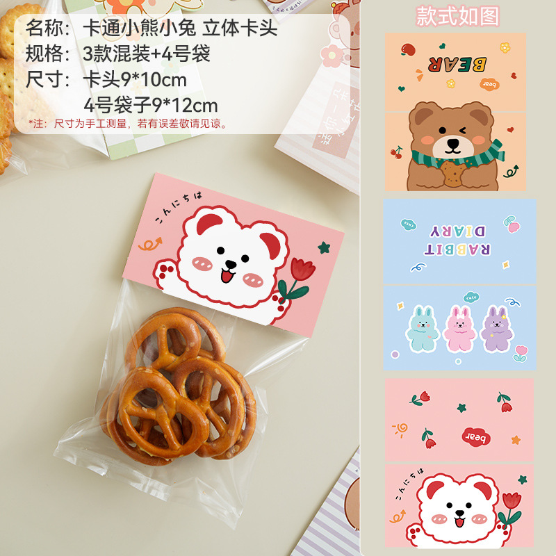 - Specifications: [Cartoon Bear and Rabbit] card head (3 types mixed) + [No. 3] biscuit bag, 100 pieces