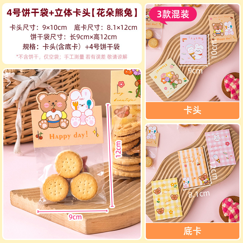 - Specifications: [Cartoon Bear and Rabbit] card head (3 types mixed) + [No. 4] biscuit bag, 100 pieces