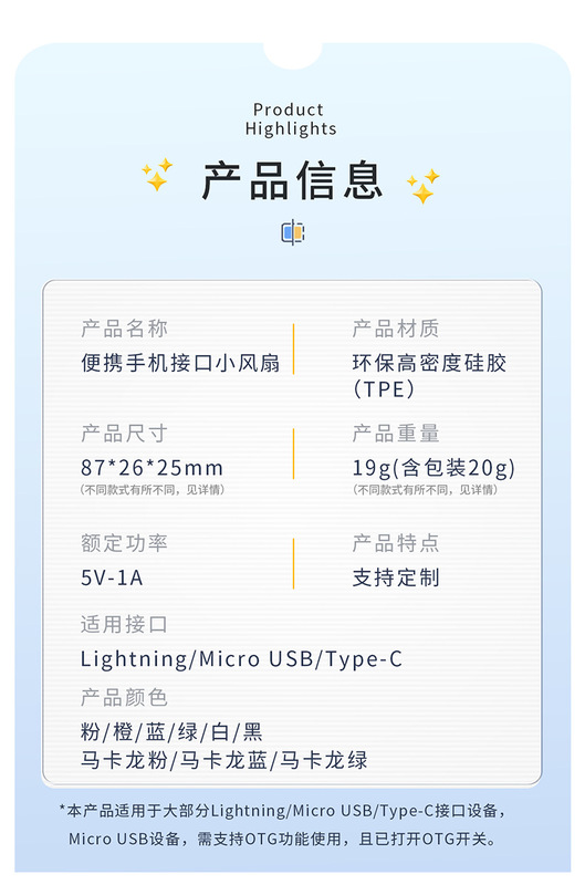 - Model: Mobile phone fan/Apple/Android/Type-c