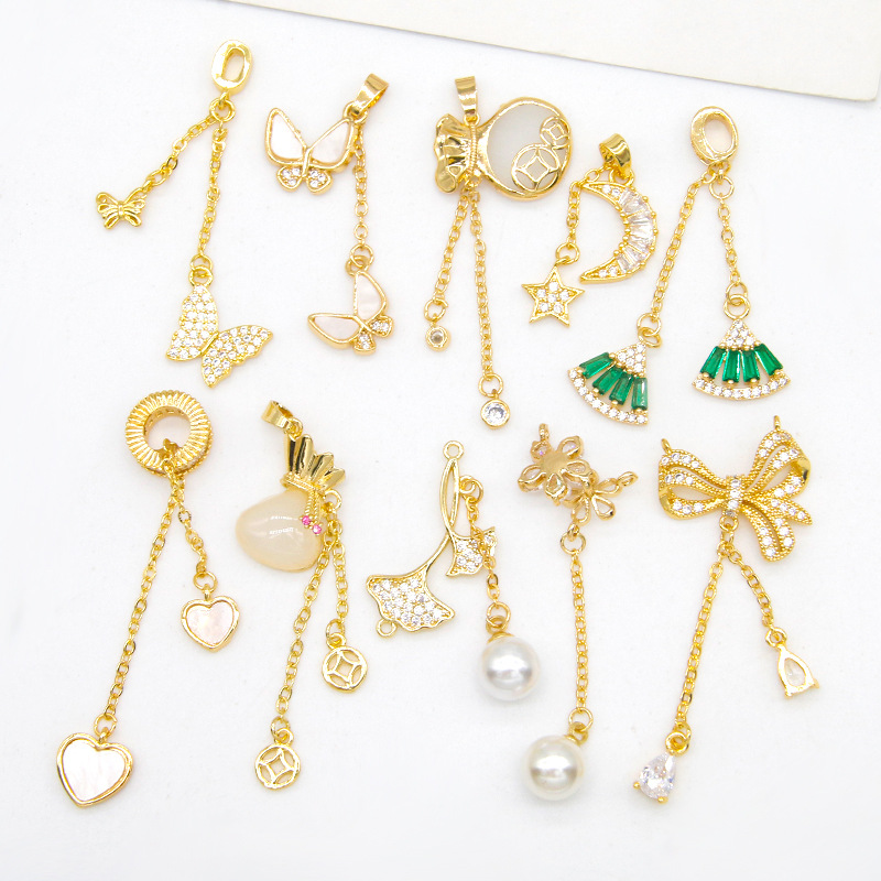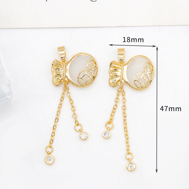 - 型號:銅鍍18K真金鑲鑽流蘇貓眼玉石吊墜