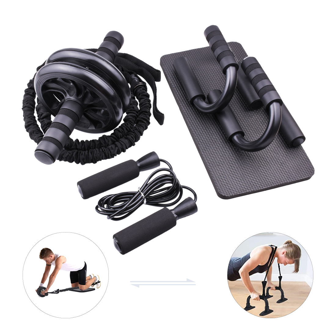 Product use: For use with the abdominal fitness wheel, the small snare is placed on the handle of the abdominal fitness wheel, and the large snare is placed on the legs.