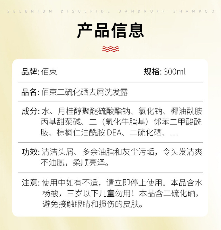 - 規格類型:二硫化硒去屑洗髮露300ml