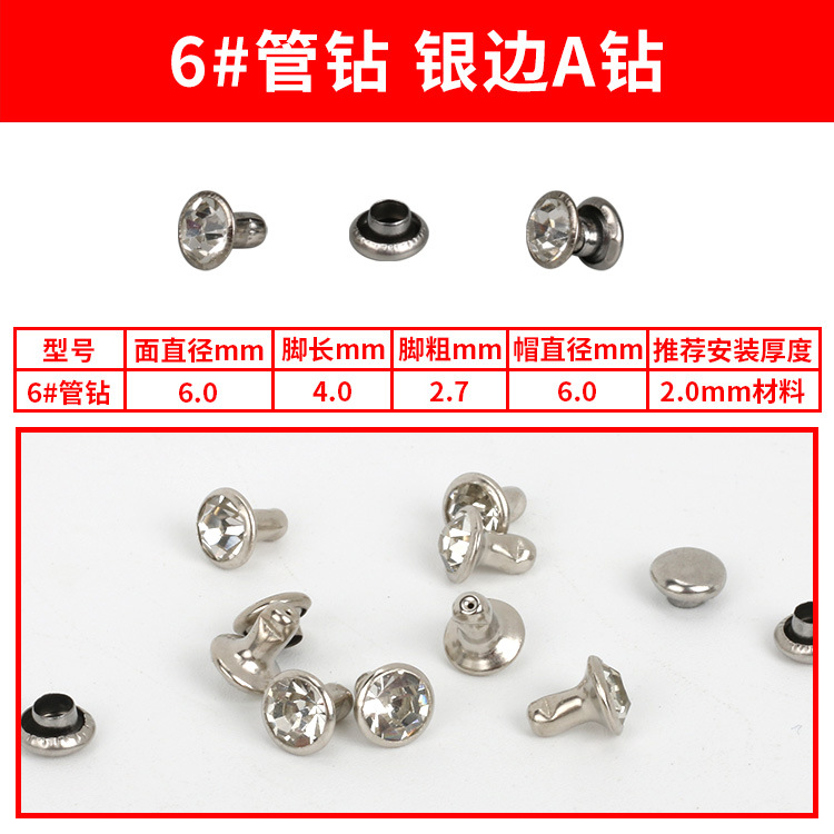 - Specification Model: 6#A Silver Diamond Studs * 100 sets per pack [PP bag]