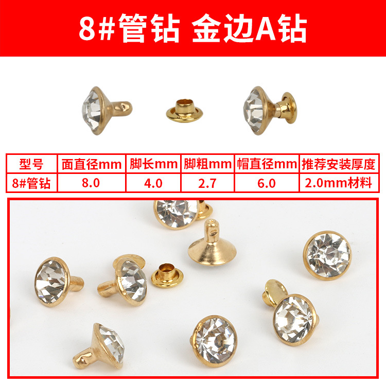 - Specification Model: 8#A Gold Diamond Studs * 100 sets per pack [PP bag]