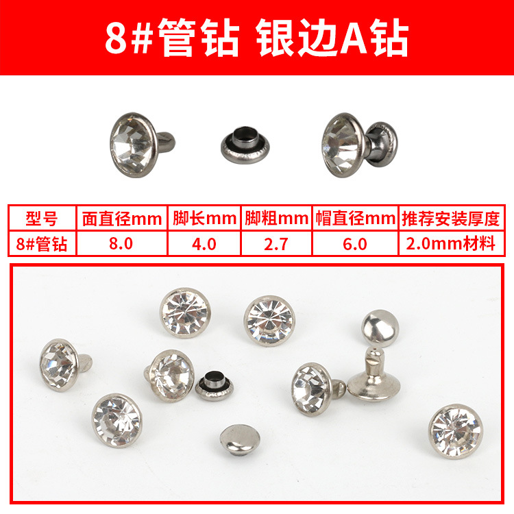 - Specification Model: 8#A Silver Diamond Studs * 100 sets per pack [PP bag]