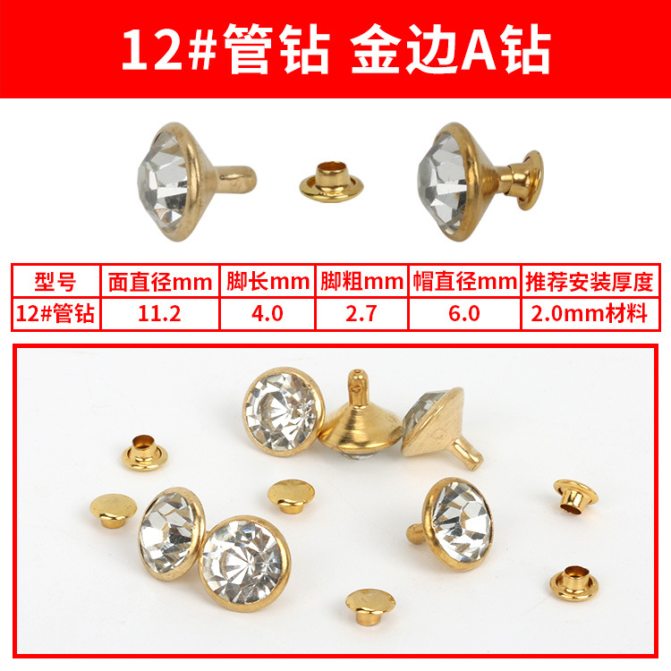 - Specification Model: 12#A Gold Diamond Studs * 100 sets per pack [PP bag]