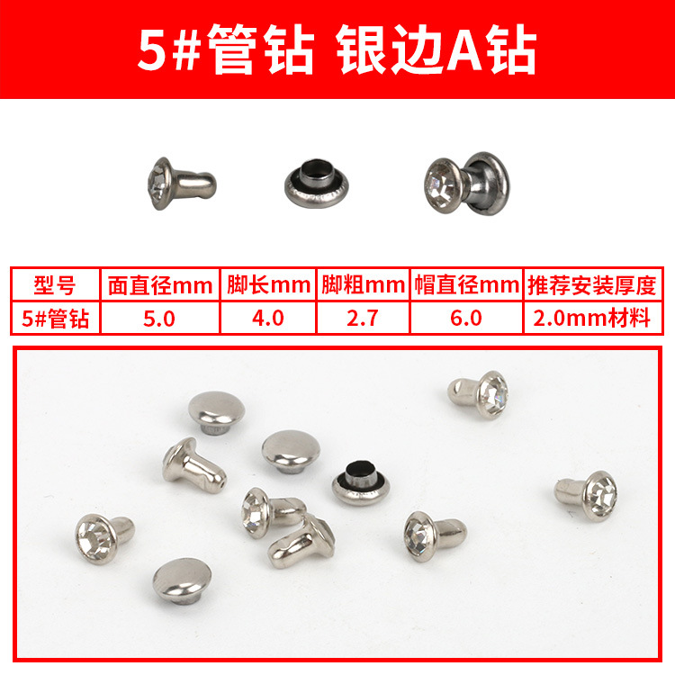 - Specification Model: 5#A Silver Diamond Studs * 100 sets per pack [PP bag]