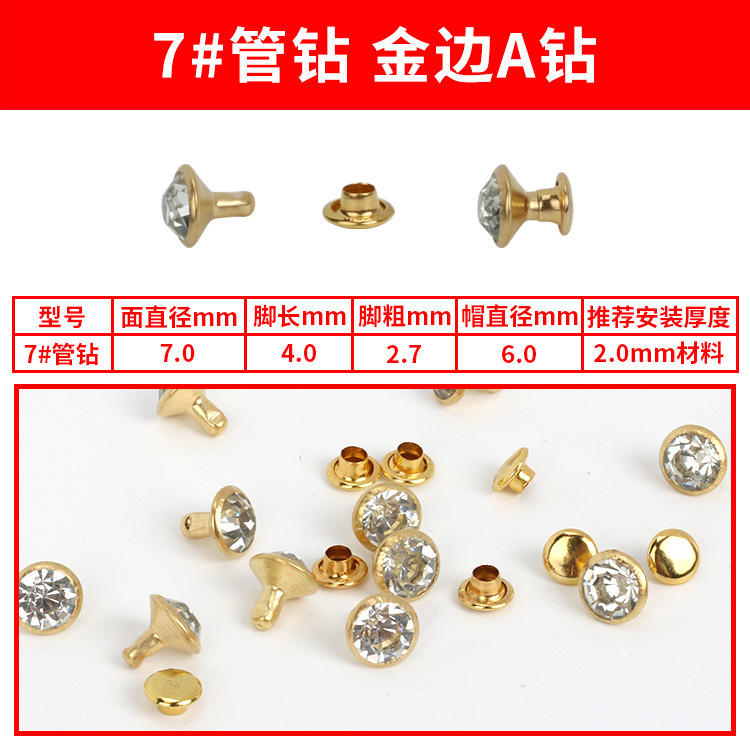 - Specification Model: 7#A Gold Diamond Studs * 100 sets per pack [PP bag]