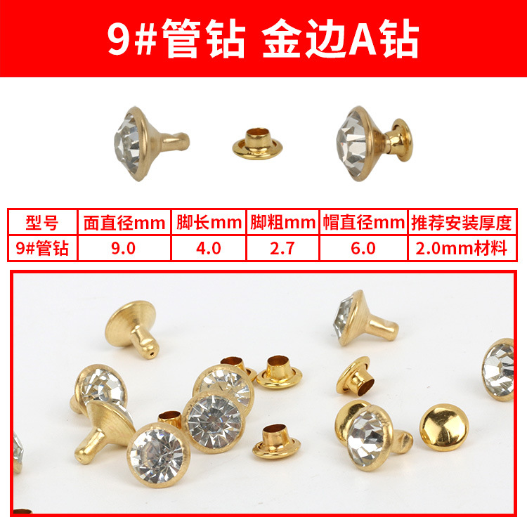 - Specification Model: 9#A Gold Diamond Studs * 100 sets per pack [PP bag]