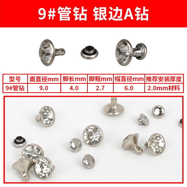 - Specification Model: 9#A Silver Diamond Studs * 100 sets per pack [PP bag]