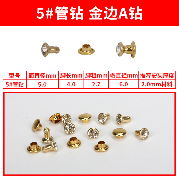 - Specification Model: 5#A Gold Diamond Studs * 100 sets per pack [PP bag]