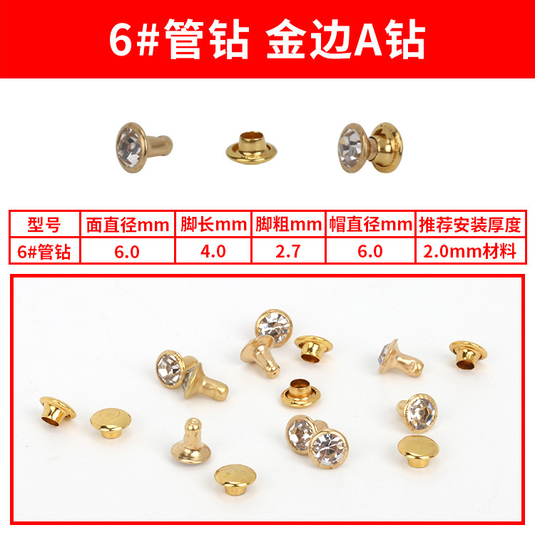 - Specification Model: 6#A Gold Diamond Studs * 100 sets per pack [PP bag]