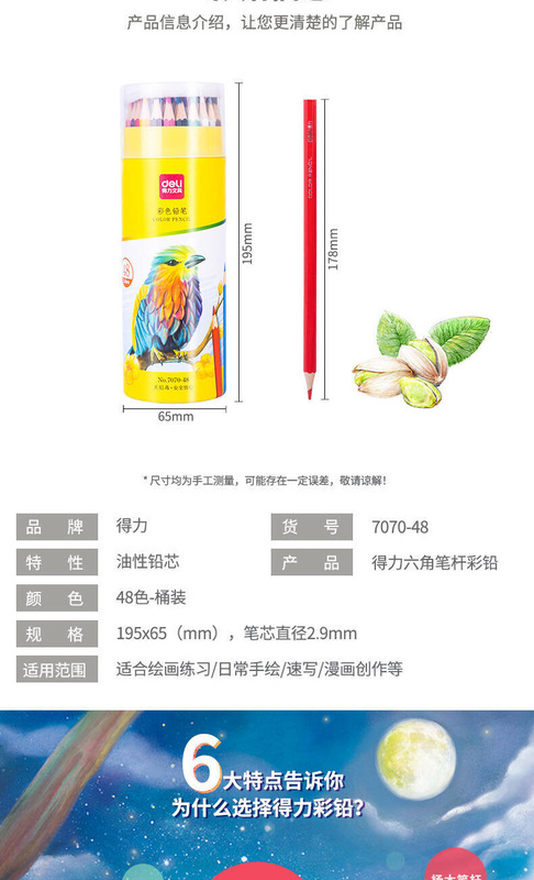 - Model: Deli 7070-48_48-color hexagonal colored lead (mixed) (48 colors/tube)