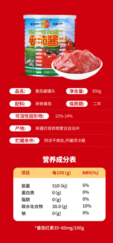 - Packaging specifications: 850 grams of tomato paste