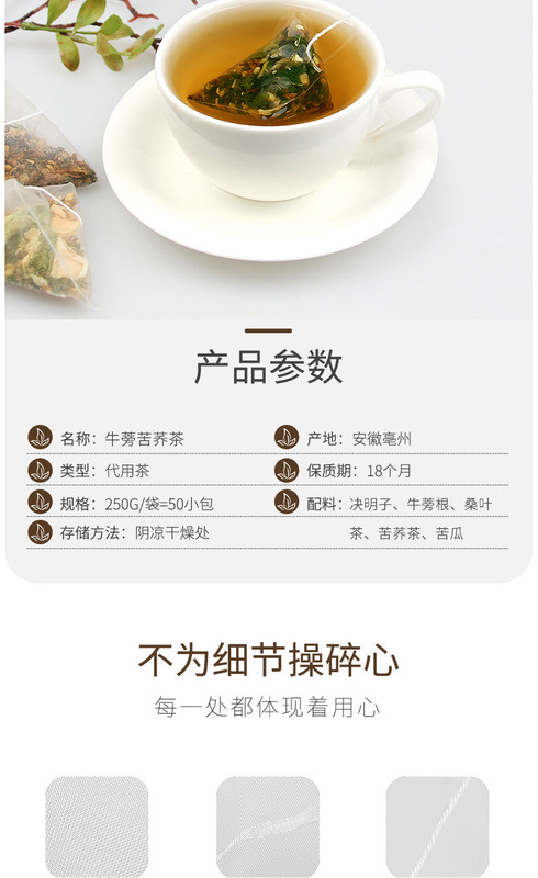 - Ingredients &配料: Burdock Root, Bitter Melon Tea, Mulberry Leaves, Bitter Melon, Senna Seed