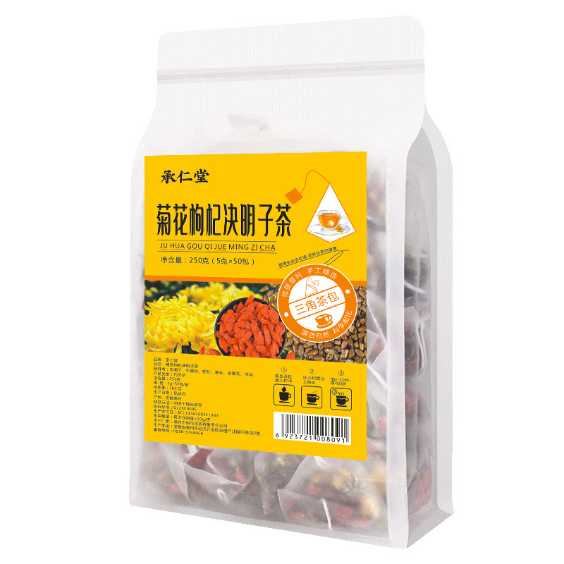 - 原料與配料:決明子、牛蒡茶、菊花、枸杞、金銀花、桂花