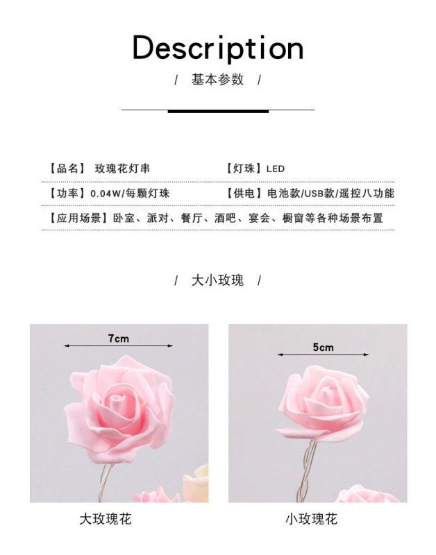 - Power: [remote control USB model 8 modes] [3 meters 20 lights]