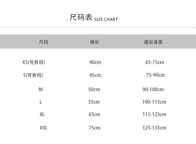 - 筒高:連褲