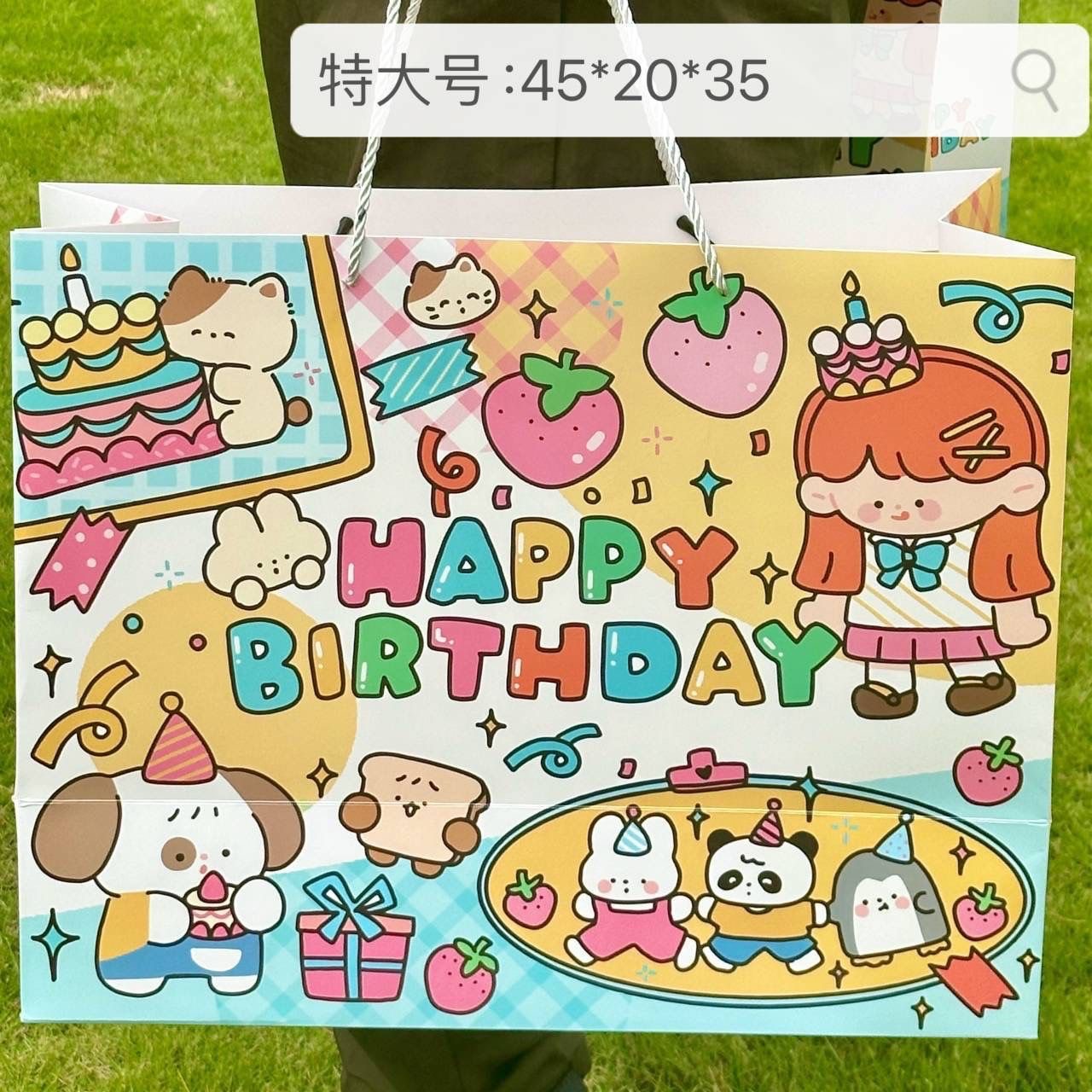 - 材質:小草莓生日派對禮品袋特大號
