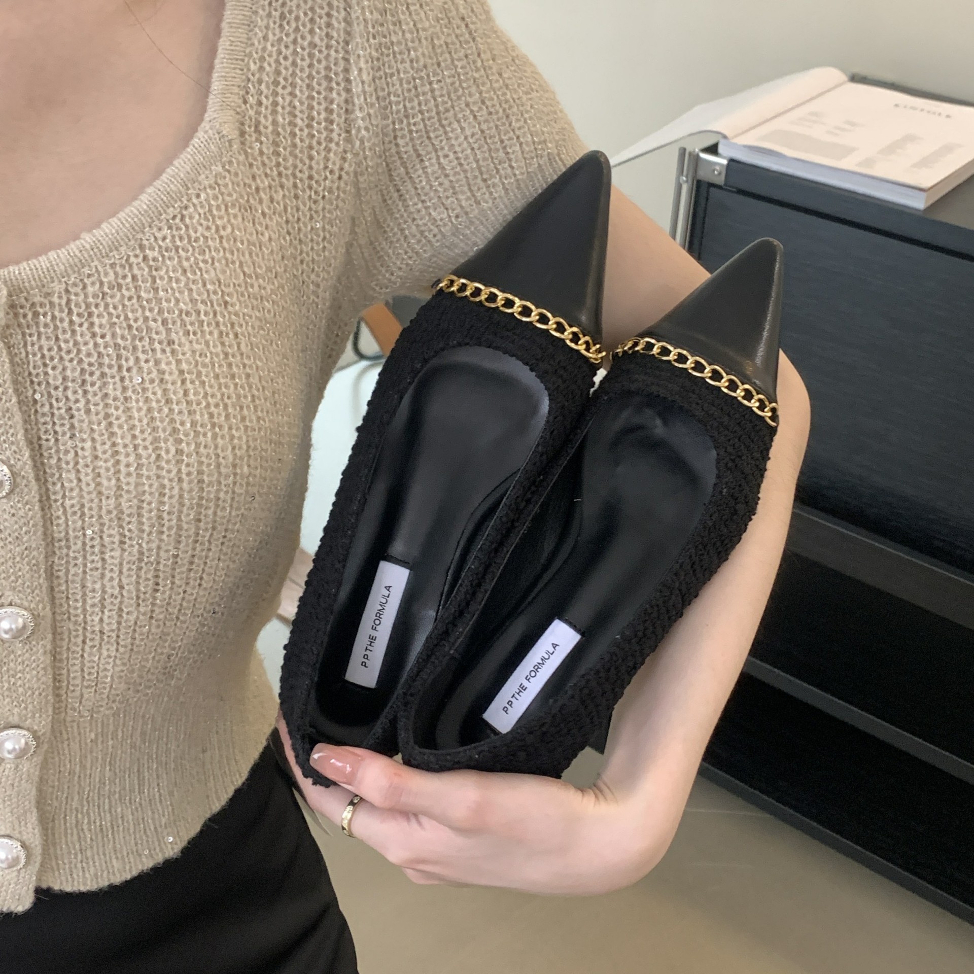 - 鞋頭形狀:尖頭
