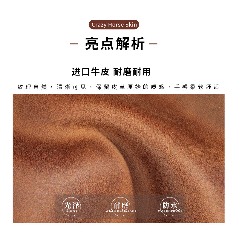 - 皮質特徵:頭層牛皮