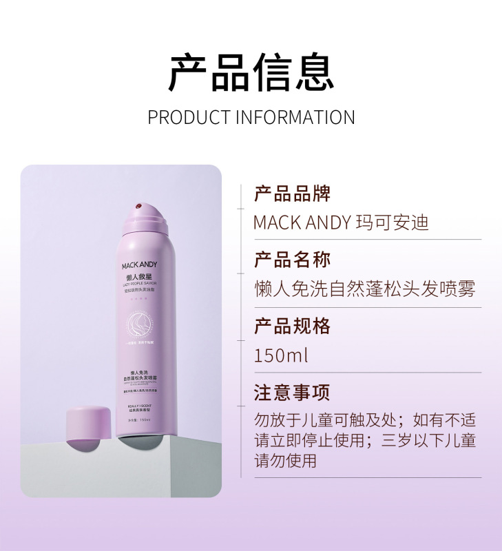 - 產品系列:瑪可安迪懶人去油免洗髮噴霧