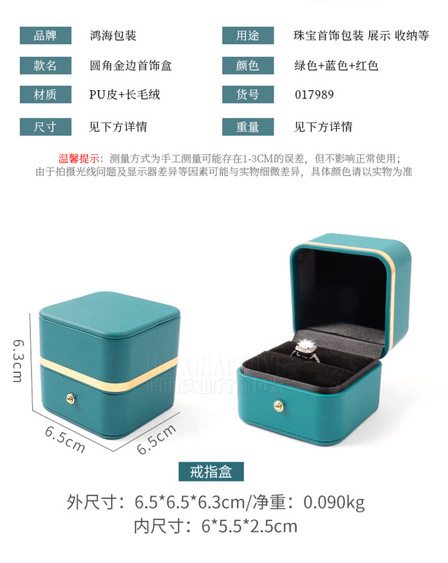 - 規格型號:綠色*戒指盒6.5*6.5*6.3cm