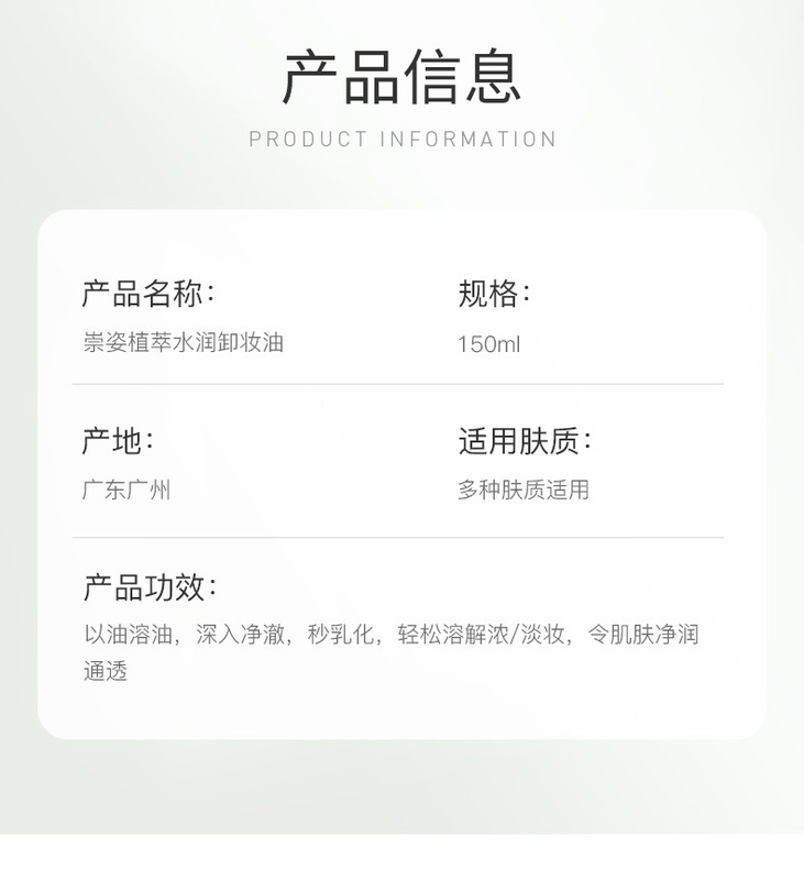 - 規格:崇姿植萃水潤卸妝油150ml