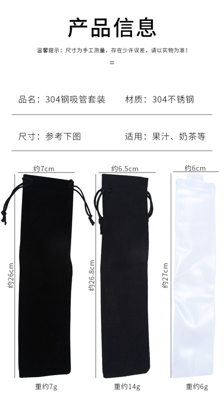 - Specification: Rose gold straw set + black velvet bag