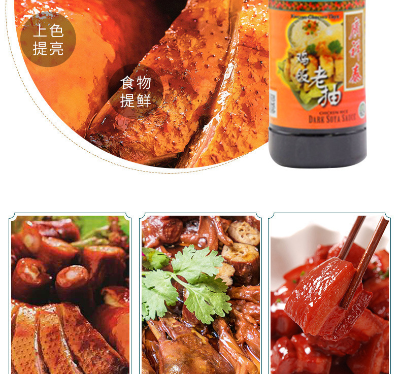 - Feature 2: Chicken rice, dark soy sauce, aged dark soy sauce, Wang Xiang dark soy sauce, plus sun-dried dark soy sauce