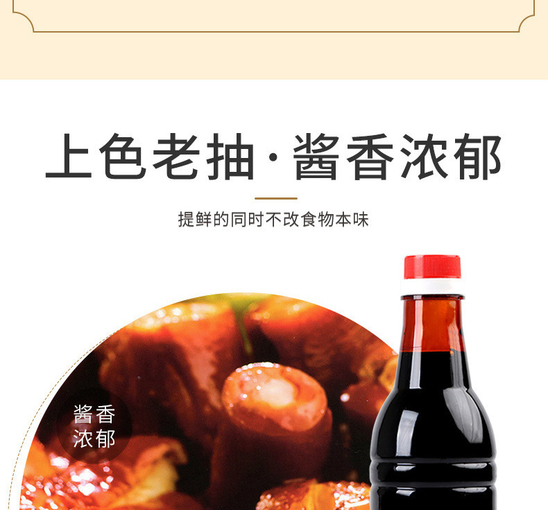 - Feature 1: Colored dark soy sauce brewed with non-GMO soybeans