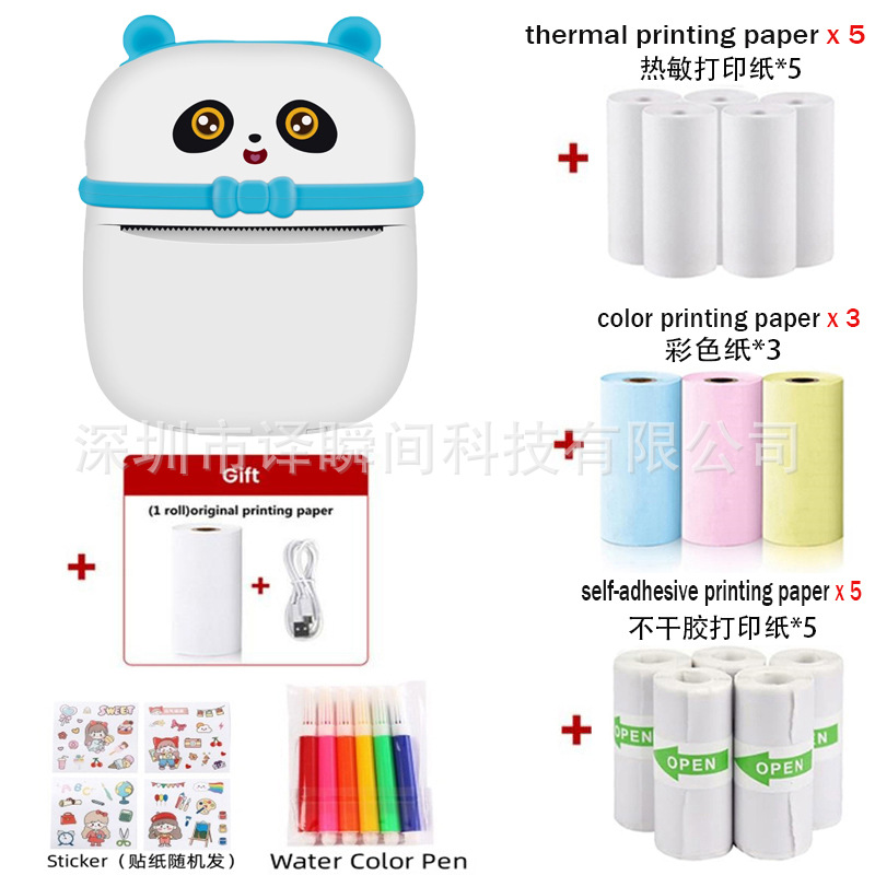 - Model: S1 Blue - English Version [Includes 1 Roll of Printing Paper + 5 Rolls of Thermal Paper + 3 Rolls of Colored Paper + 5 Rolls of Self-Adhesive Paper + 6 Watercolor Pens + Stickers]