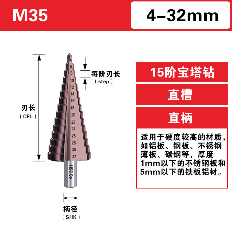 - Material: M35 Cobalt High-Speed Steel
