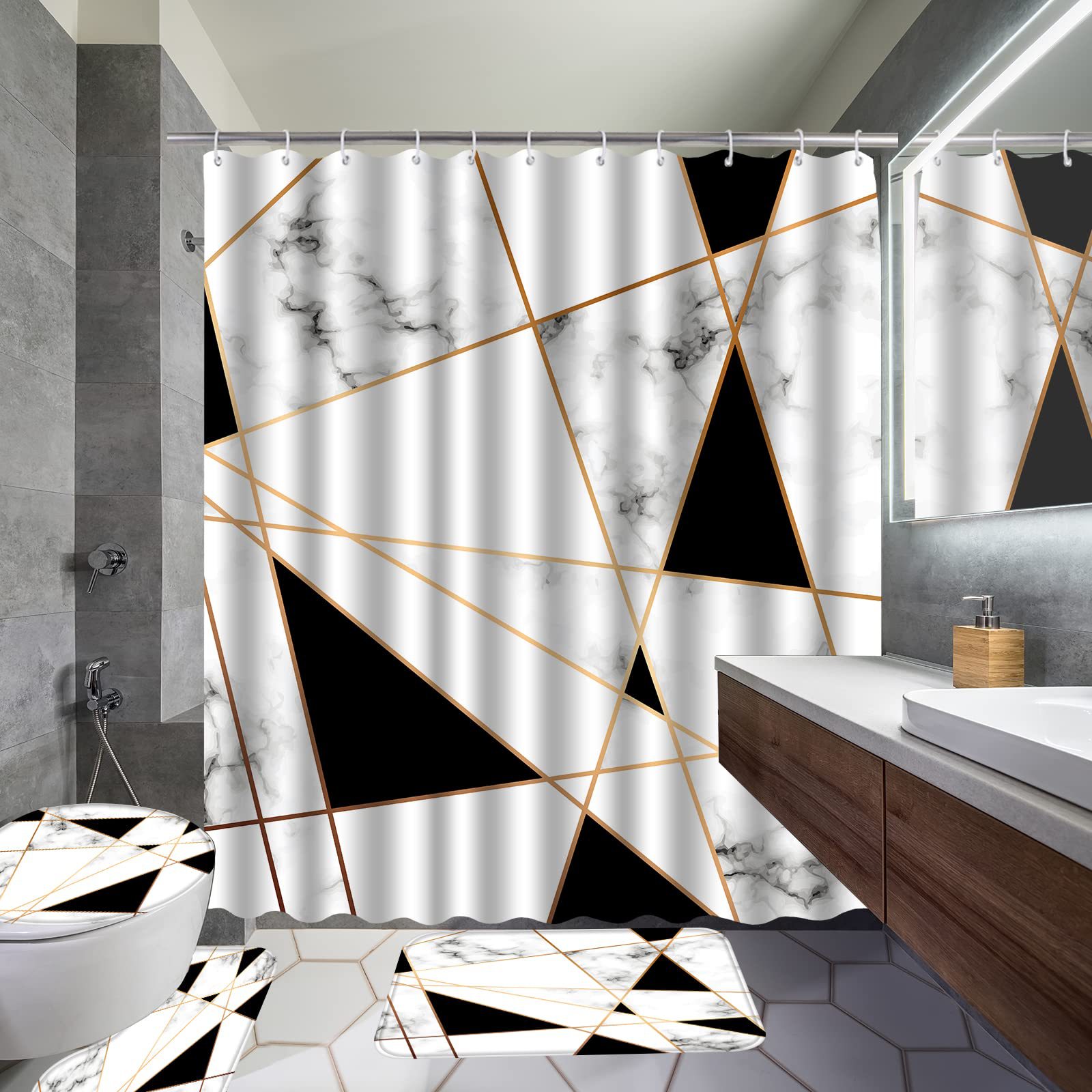 - Specification: Shower Curtain + Mat Set of 4
