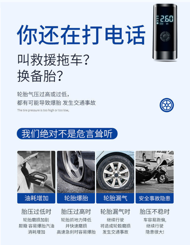 - Additional features: Tire pressure gauge